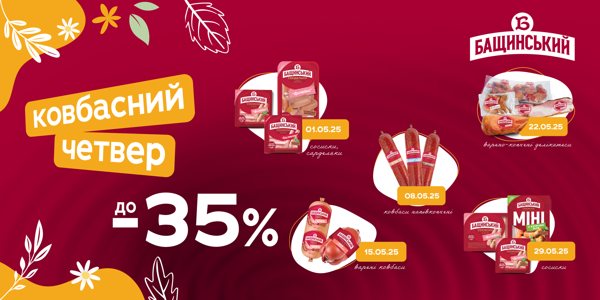 • мʼясо-ковбасних виробів ТМ «Бащинський» та ТМ «Наша Ряба»;