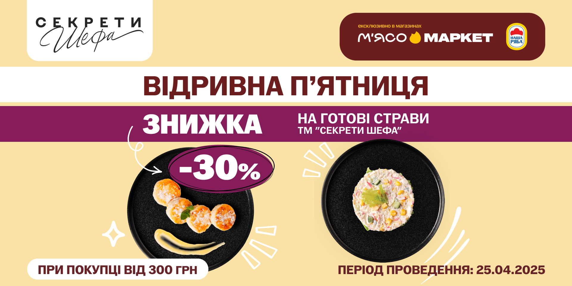 до найближчої фірмової точки «Наша Ряба», «М’ясомаркет», «Döner Маркет» та «Українське Курча»